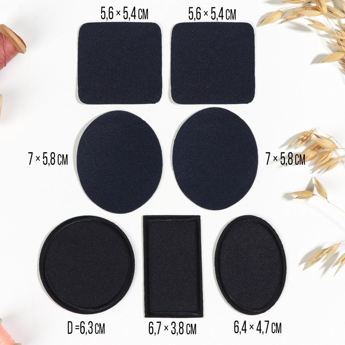 Набор заплаток для одежды, термоклеевые, 7 шт, цвет чёрный