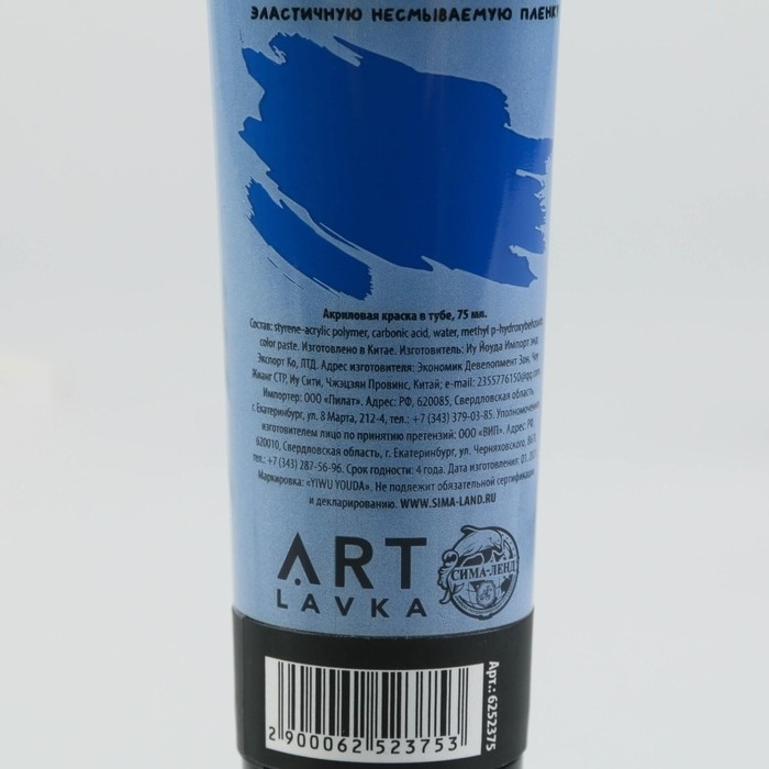 Акриловая краска, цвет ультрамарин, №443 в тубе 75 мл, ARTLAVKA