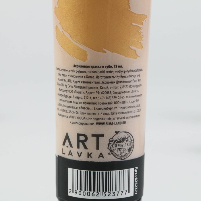 Акриловая краска, цвет metallic золото в тубе 75 мл, ARTLAVKA