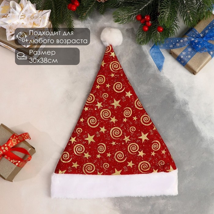 Колпак новогодний "Звёздный калейдоскоп" 30х38 см, красный