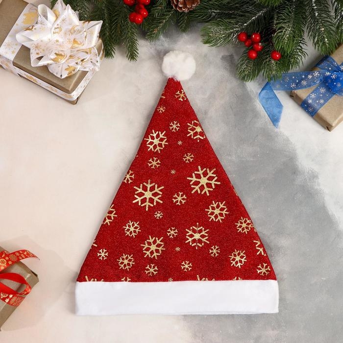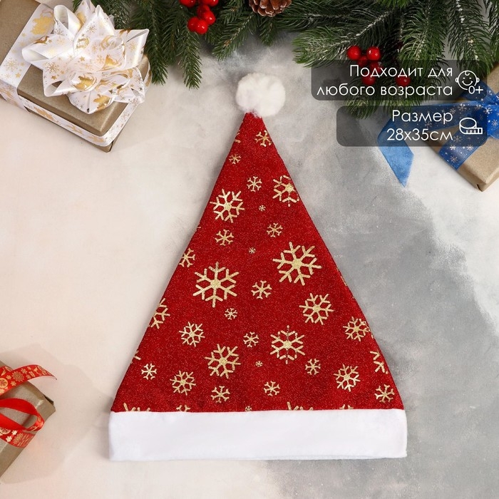 Колпак новогодний "Снежинки" 28х35 см, красный