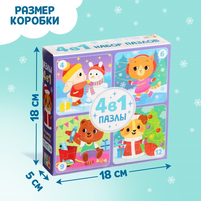 Пазлы 4 в 1 «Новогодние радости», 9, 16, 25, 36 элементов