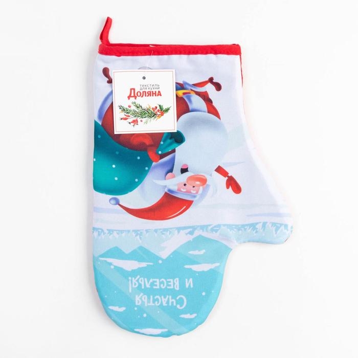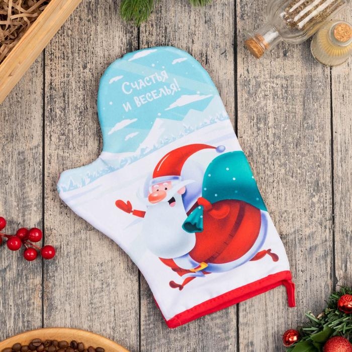 Новый год. Новогодняя варежка-прихватка "With new happiness" 20х28см,35% х/л,65% п/э,ватин 250г/м2