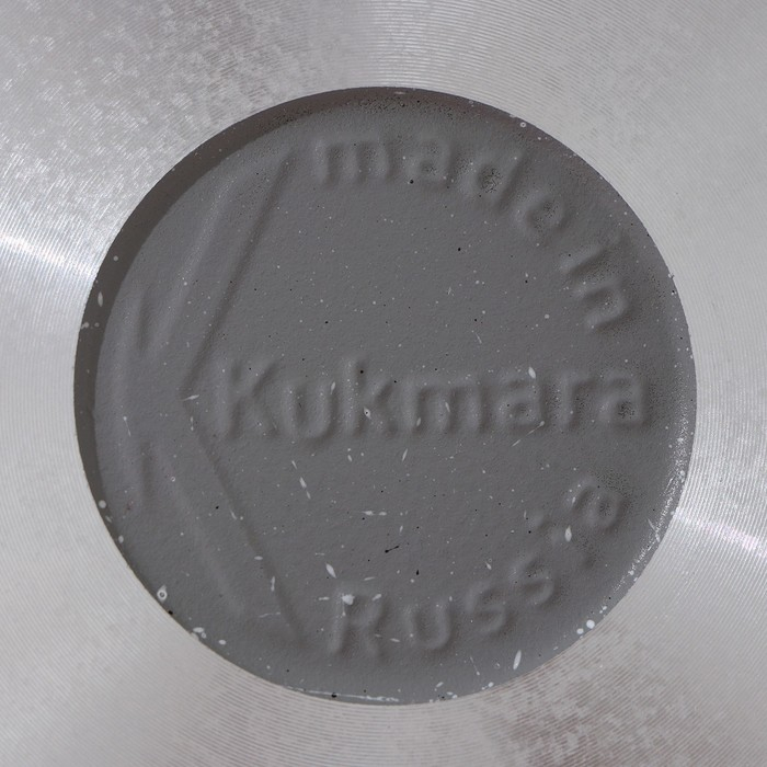 Посуда Kukmara «Мраморная» изготовлена из литого алюминия и покрыта инновационным антипригарным мраморным покрытием на водной основе, усиленным сверхтвёрдыми частицами минералов.