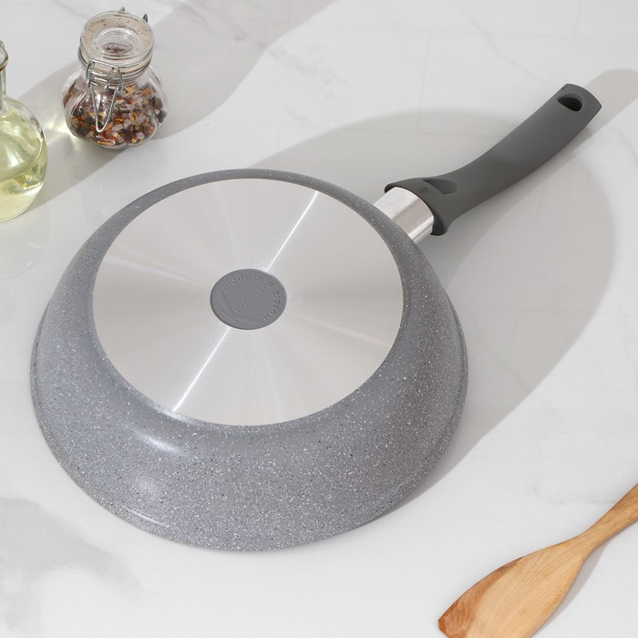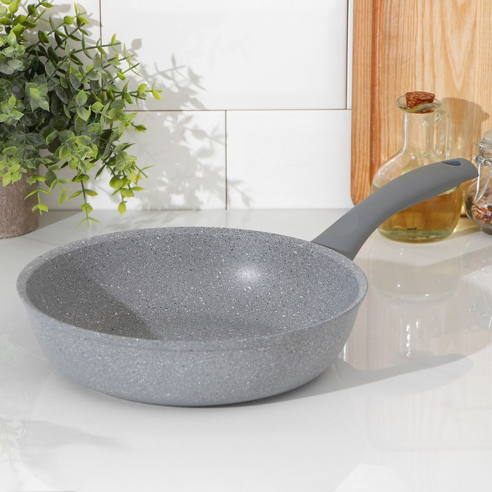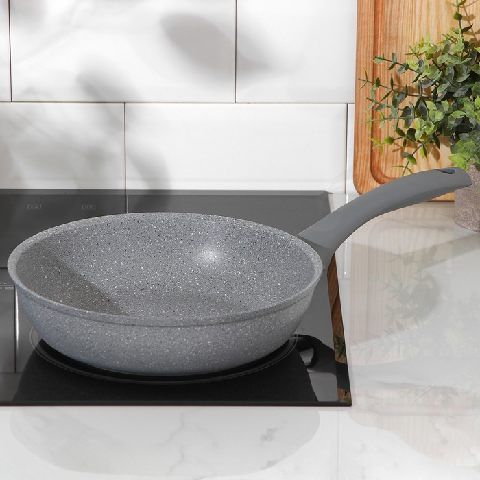 Сковорода, d=24 см, пластиковая ручка, антипригарное покрытие, цвет светлый мрамор