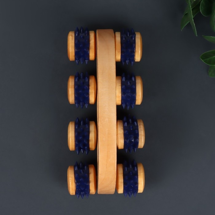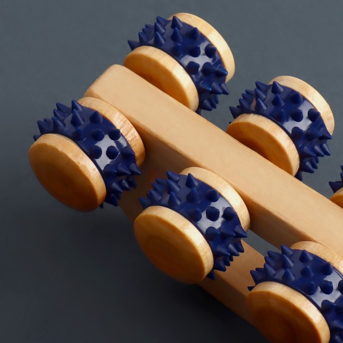 Массажёр «Барабаны», 5 рядов с шипами, 27 × 19 × 5 см, деревянный