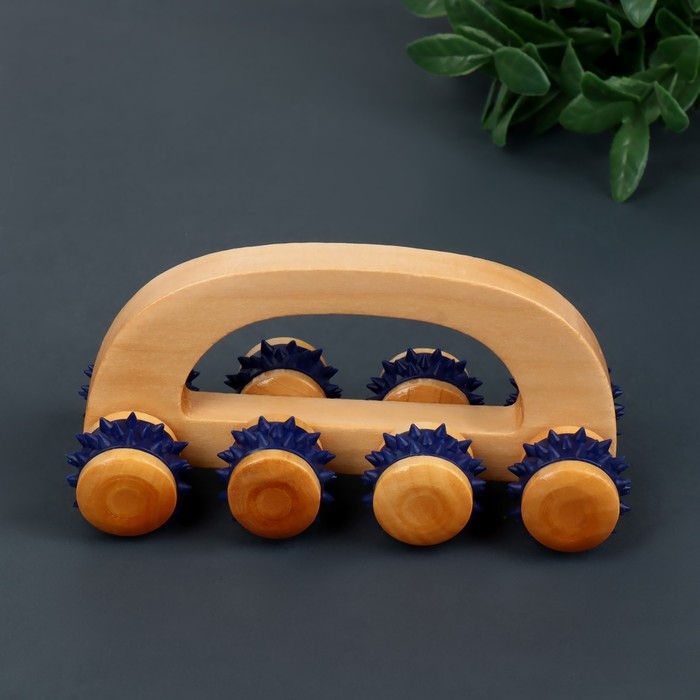 Массажёр с шипами «Гусеница», 15 × 6,8 × 6,5 см, универсальный, с ручкой, 8 колёс, деревянный, цвет МИКС