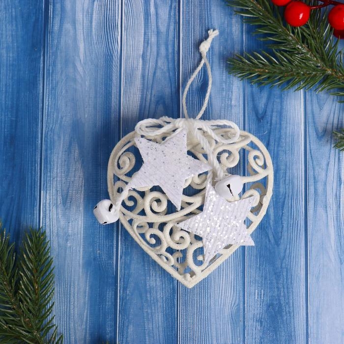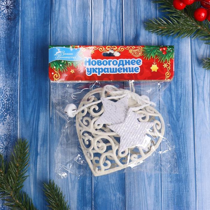 Украшение ёлочное "Сердце кружевное со звёздами" 9х10 см, белый