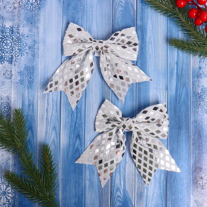Украшение ёлочное "Бант люкс" (набор 2 шт) 12х11 см, серебро