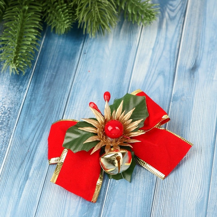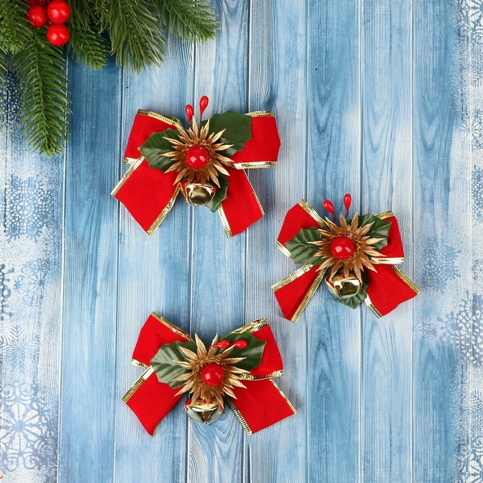 Украшение ёлочное "Зимнее чудо" (набор 3 шт) бантик цветок, 11х6,5 см, красный