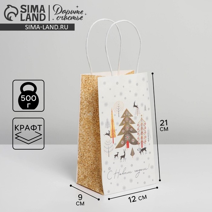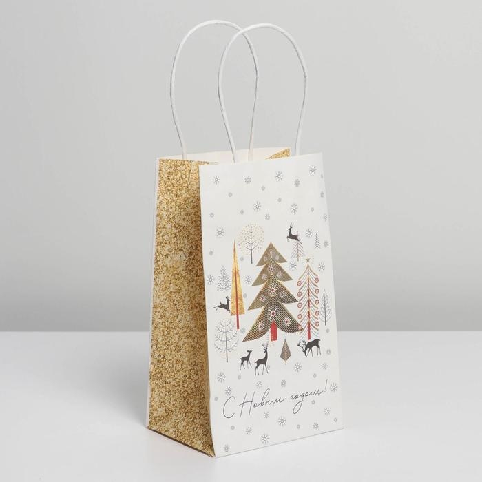 Пакет подарочный новогодний крафтовый «Сказка», 12 х 21 х 9 см, Новый год