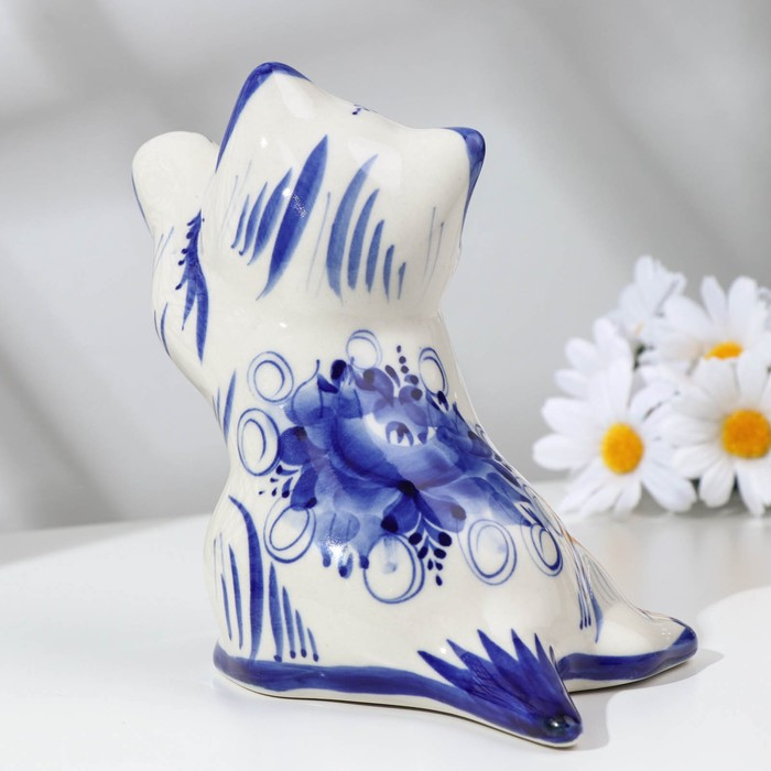 Сувенир "Кошка Дарси в стойке", гжель, фарфор, 15х16 см