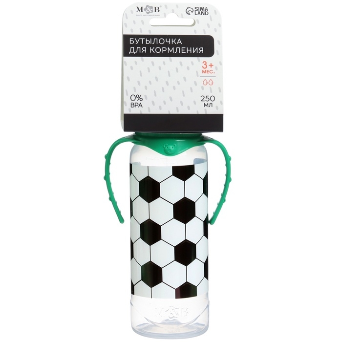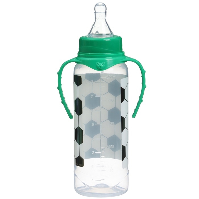Бутылочка для кормления «Футболист», классическое горло, 250 мл., от 3 мес., цилиндр, с ручками