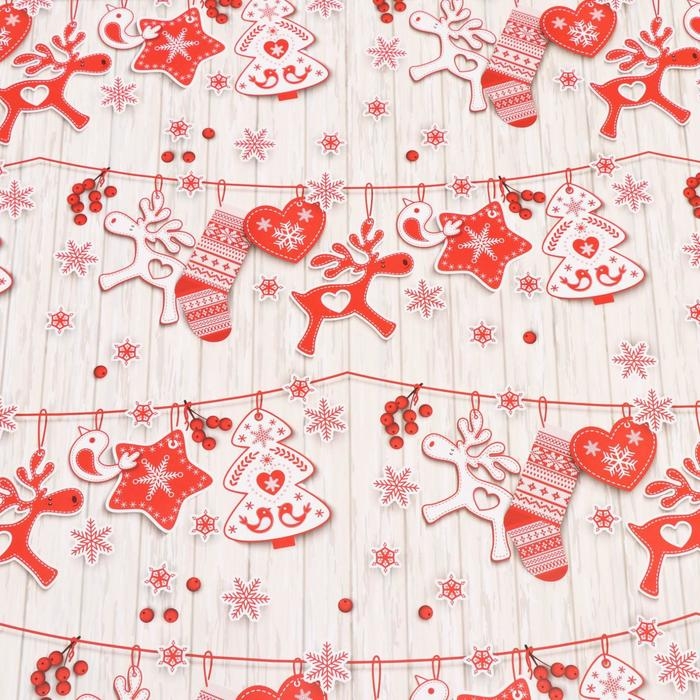 Новый год. Бумага упаковочная глянцевая "Рождественская гирлянда", 70 х 100 см,1 лист