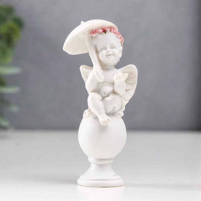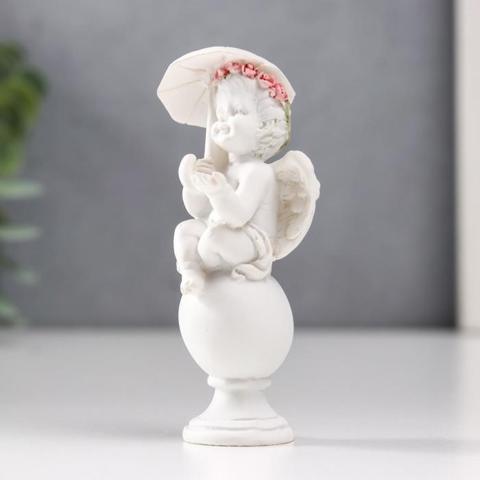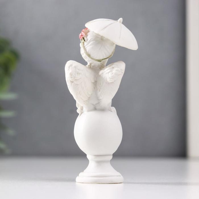 Сувенир полистоун "Белоснежный ангел в розовом венке, на шаре под зонтом" 8,5х3,8х3 см