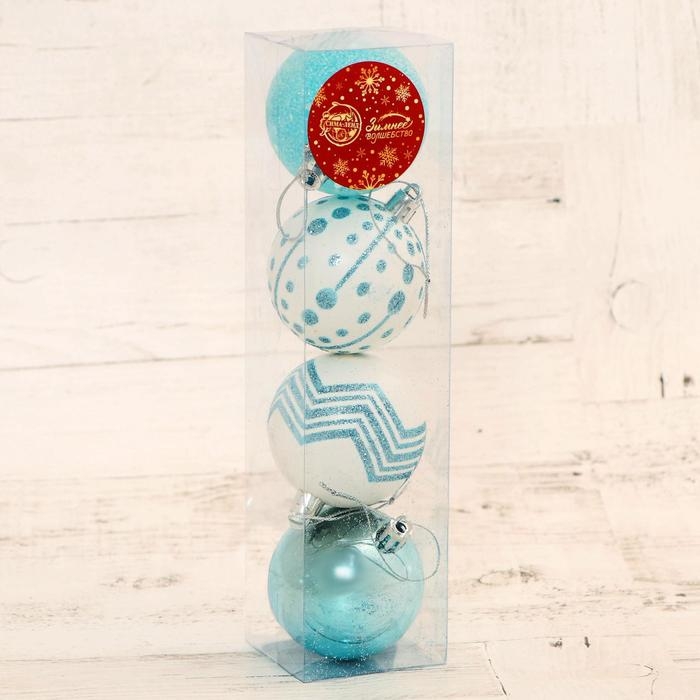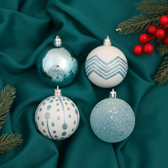 Набор шаров пластик d-6 см, 4 шт "Рогнеда" бело-голубой