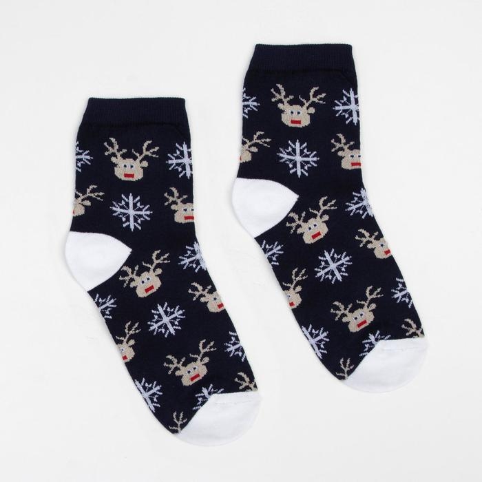 Носки детские «Олени и снежинки» цвет синий, размер 22-24