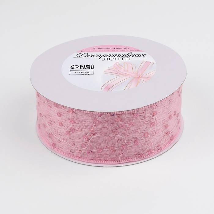 Лента декоративная «Пайетки», 40 мм, 9 ± 0,5 м, цвет розовый