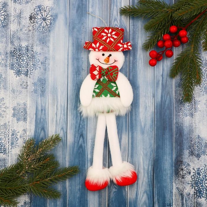 Мягкая игрушка "Снеговик в костюме с орнаментом, в шляпке" 9,5х30 см, красно-зелёный