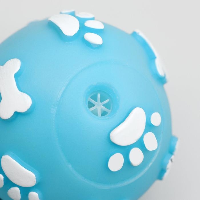 Мячик пищащий "Лапки" для собак, 5,5 см, голубой