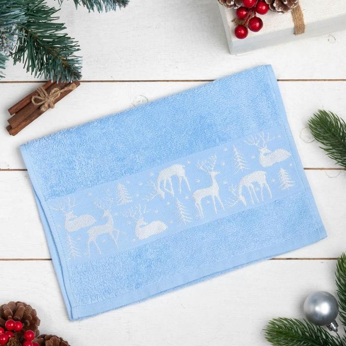 Новогоднее полотенце махровое "Олени" 30х60 см, 100% хлопок, 360гр/м2