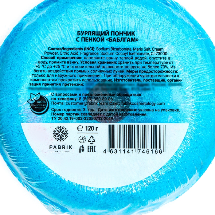 Бомбочка для ванн Fabrik Cosmetology с пенкой, бабл гам, 120 г
