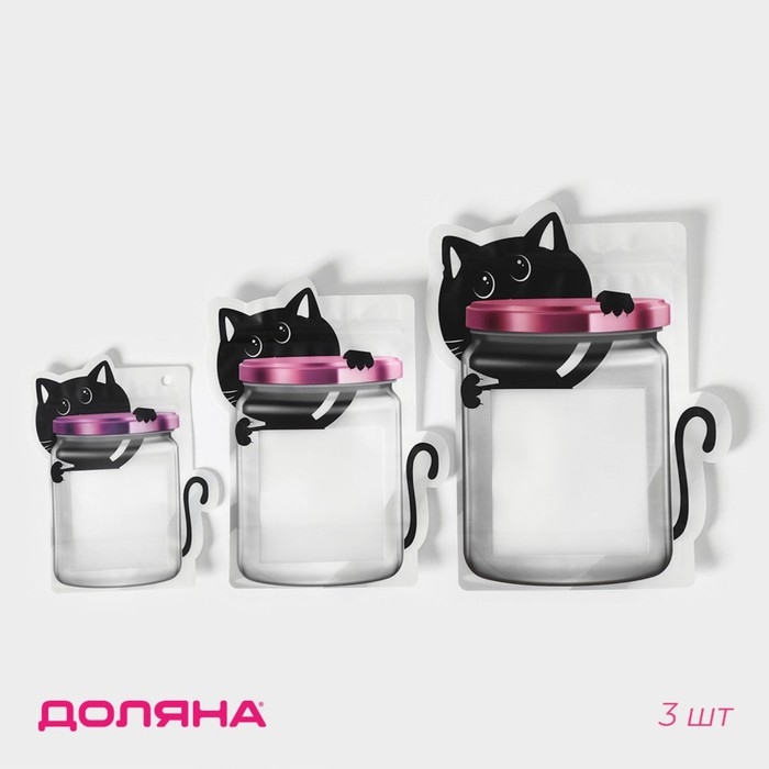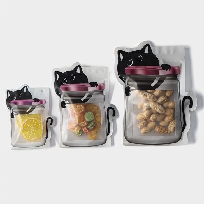 Набор пакетов для хранения сыпучих продуктов Доляна, застёжка zip-lock, 3 шт, 18,2×23,5 см, 14,5×19 см, 11,2×14,5 см