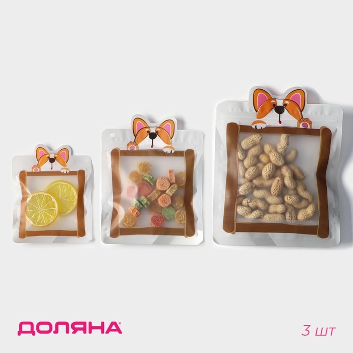 Набор пакетов для хранения сыпучих продуктов Доляна, застёжка zip-lock, 3 шт, 18,2×23,5 см, 14,5×19 см, 11,2×14,5 см