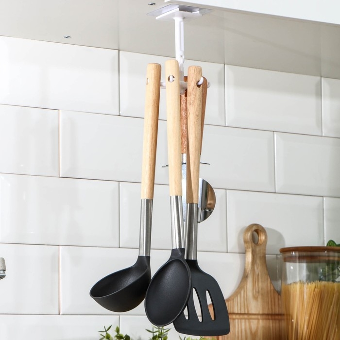 Держатель для кухонных принадлежностей настенный Доляна, 5 крючков, 28×8×8 см, цвет чёрный