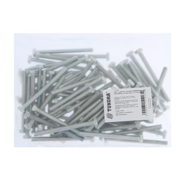 Болт ТУНДРА, оцинкованный, DIN 933, класс прочности 8.8, М6х70 мм, 1 кг