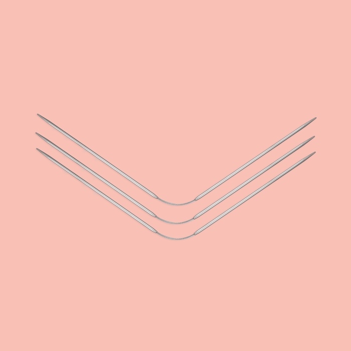 Гибкие спицы идеально подходят для изделий небольшого размера: носков, варежек, гольф. Петли распределяются по двум спицам и провязываются при помощи третьей спицы, таким образом уменьшается количество переходов. И за счёт этого ускоряется процесс вязания. Гибкие спицы также можно использовать в качестве вспомогательных при вывязывании кос.