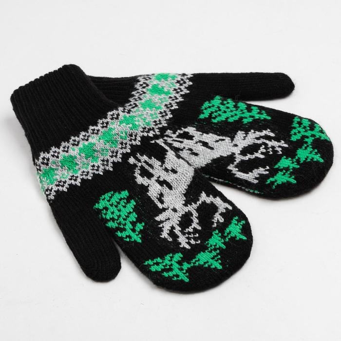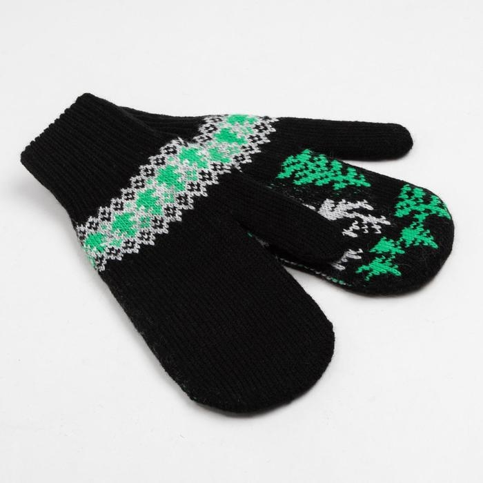 Новый год. Варежки женские, цвет чёрный, размер 18