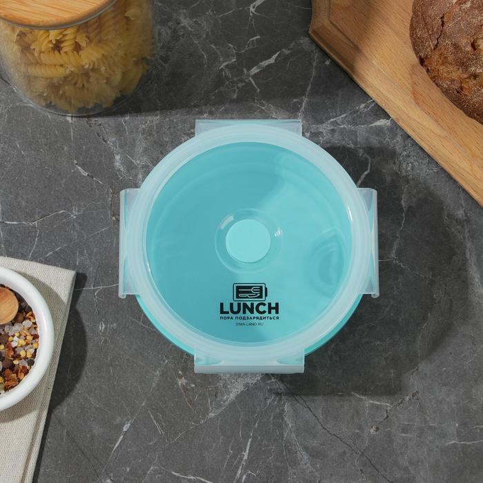 Ланч-бокс имеет круглую форму и объем 500 мл, что позволяет вместить достаточное количество пищи. Герметичная крышка с защелками обеспечивает надежное хранение пищи и предотвращает ее проливание.