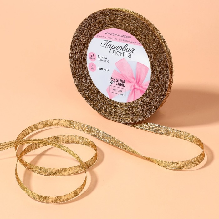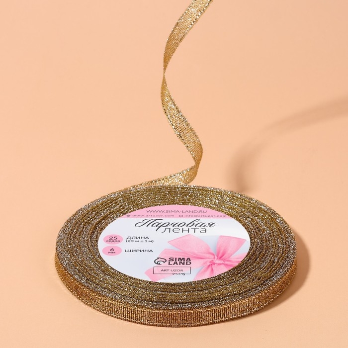 Лента парчовая, 6 мм, 23 ± 1 м, цвет бежевый №035
