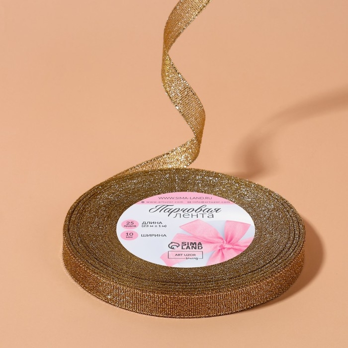 Лента парчовая, 10 мм, 23 ± 1 м, цвет бежевый №035