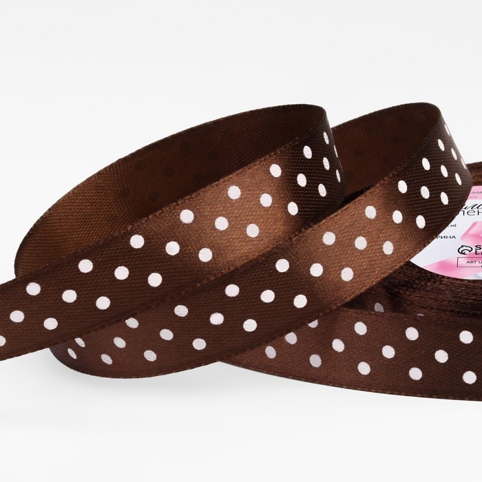 Лента атласная «Горох», 15 мм × 23 ± 1 м, цвет коричневый №032