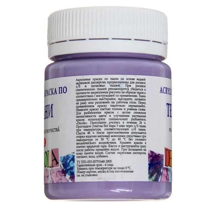 Краска по ткани, банка 50 мл, ЗХК Decola, лавандовая, 4128625, (акриловая на водной основе)