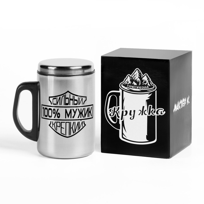 Термокружка, 250 мл, Сталь "100 % Мужик", сохраняет тепло 2 ч, 13. 5 х 7.5 см