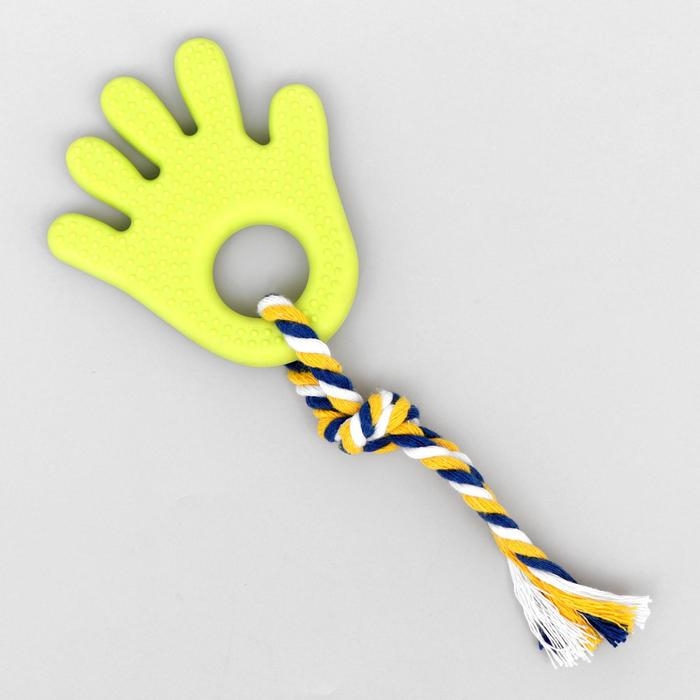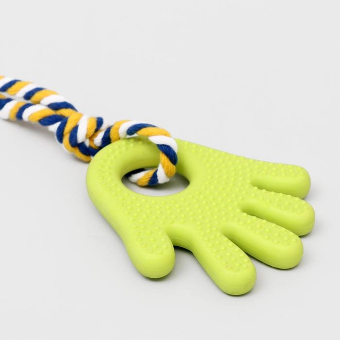 Игрушка жевательная с канатом для собак "Ладошка", 10 см, салатовая