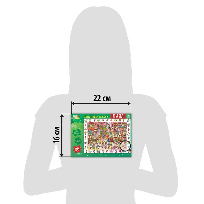 Собирайте фрагменты в одно целое, находите персонажей и предметы, а также обсуждайте с ребёнком то, что происходит на изображении. В этом вам поможет лупа из безопасного пластика.