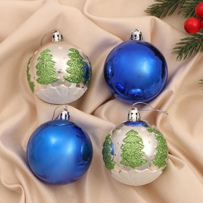 Набор шаров пластик d-6 см, 4 шт "Дорофея ёлочки" микс