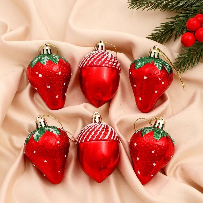 Украшение ёлочное "Клубничное ассорти" (набор 6 шт) 4,5х6 см, красный
