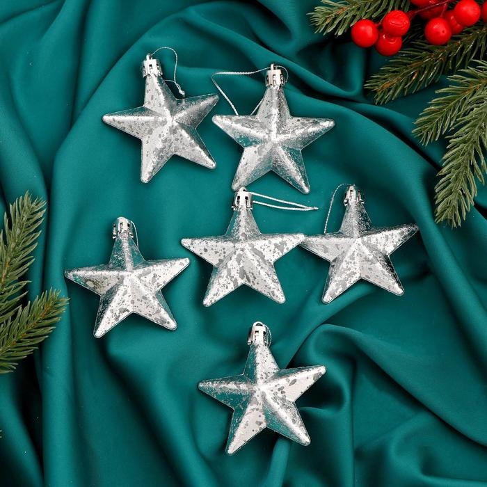 Украшение ёлочное "Звёзды грация" (набор 6 шт) 6х6 см, серебро
