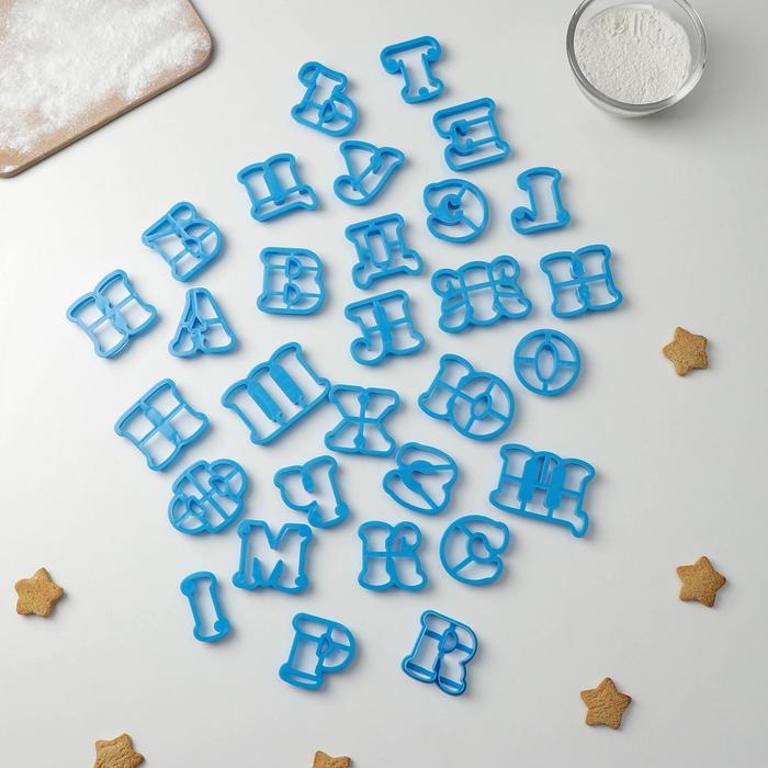 Набор форм для печенья Доляна «Русский алфавит», 30 шт, цвет голубой