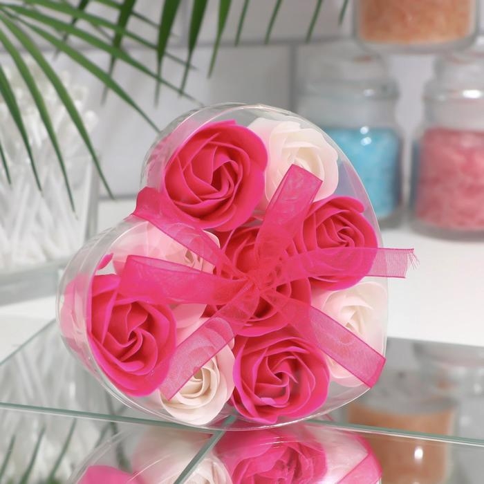 Мыльные розочки, фуксия и белые, набор 9 шт.