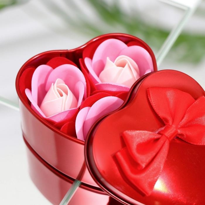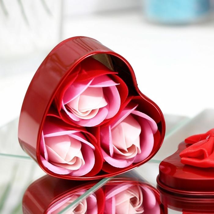 Мыльные розы в коробке, розовые, набор 3 шт