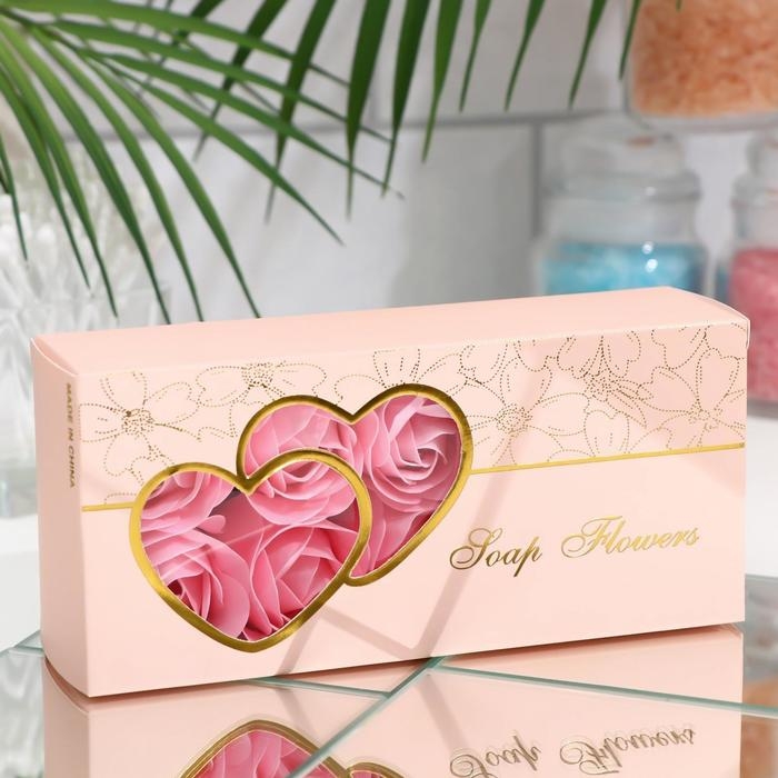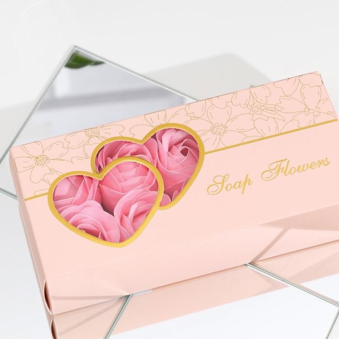 Мыльные розы в коробке, розовые, набор 3 шт