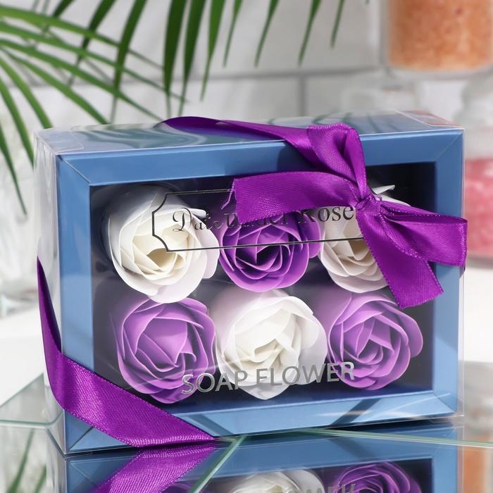 Мыльные розочки, белые и фиолетовые, набор 6 шт.