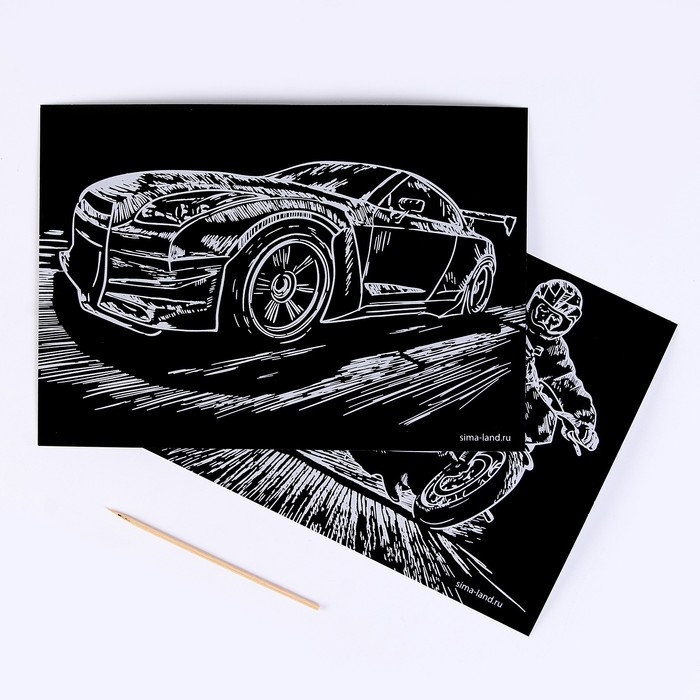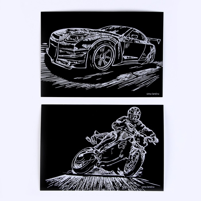 Набор гравюр А5 «Автомобиль и мотоцикл» 2 шт., с металлическим эффектом «серебро»