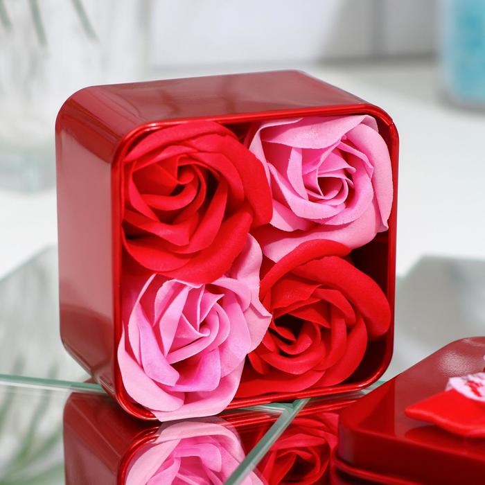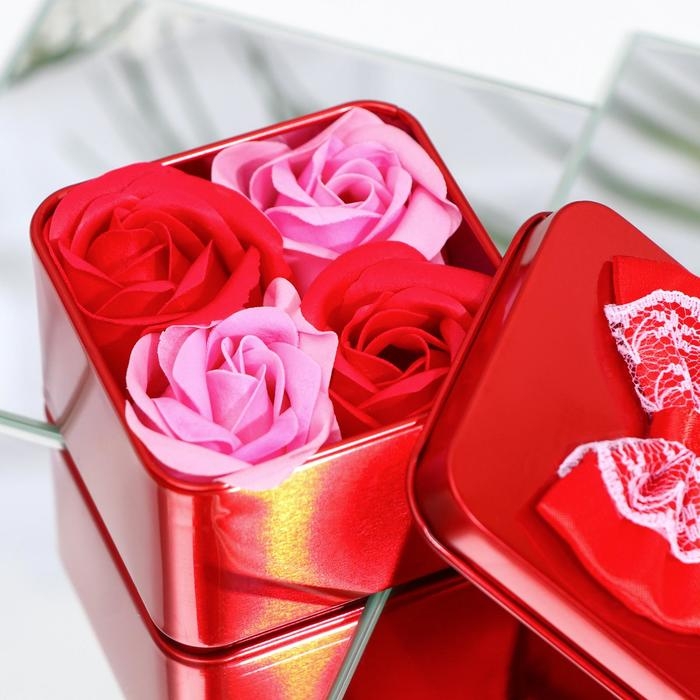 Мыльные розочки, розовые и красные, набор 4 шт.